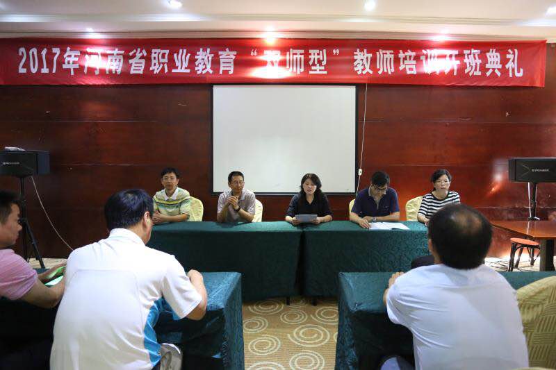 2017年7月11日上午,2017年河南省职业教育“双师型”教师培训开班典礼在怡莱酒店会议室召开。出席开班典礼的领导有beat365机电公司经理杜虹、恒天重工股份有限公司技术部部长智红军、beat365机电公司副经理乔雪涛、beat365机电公司裴少婧。开班典礼由beat365副经理扈立新主持。