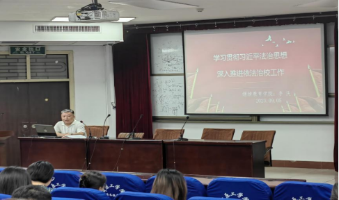 9月5日上午,我院经理李庆教授在龙湖校区4号楼311报告厅为今年公司新进教职工做了一场题为《学习贯彻习近平法治思想,深入推进依法治校工作》的专题法治宣讲报告。