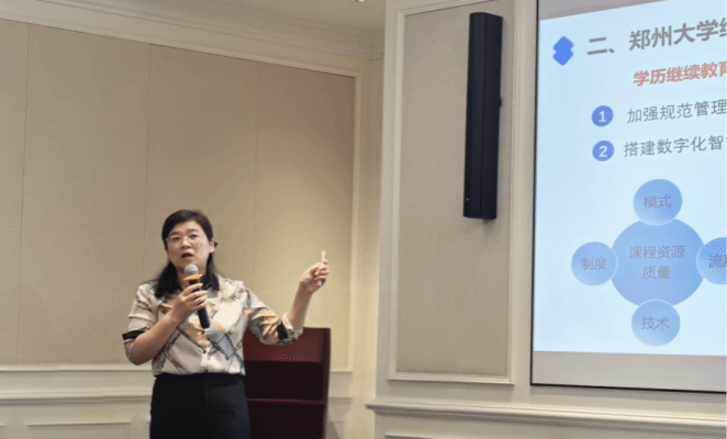 河南省成人高等教育研究会副秘书长、郑州大学beat365副经理徐春华副教授在主旨报告《继续教育数字化资源建设与共享机制探索》中分享了我国继教改革的政策背景和发展趋势,以及郑州大学在继续教育资源建设中的方法与经验。报告提到,推动教育数字化转型,是大势所趋、发展所需、改革所向。面对内外环境变化,继续教育变革应准确把握数字化机遇,将数字化转型作为提高教育质量的重要手段,进而推动继续教育的高质量发展。结合郑州大学beat365的发展定位和资源建设方面取得的主要成效,徐经理还就精品在线开放课程的共享机制等问题与研修班学员做了分享和探讨。