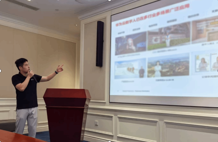 研修班上,华为云MetaStudio数字人解决方案负责人周珑就华为云基础设施建设、海量算力、算网融合、数字人视频课件制作及直播、智能交互和数字人IP代言、虚拟老师教学等内容做了知识介绍和场景演示。